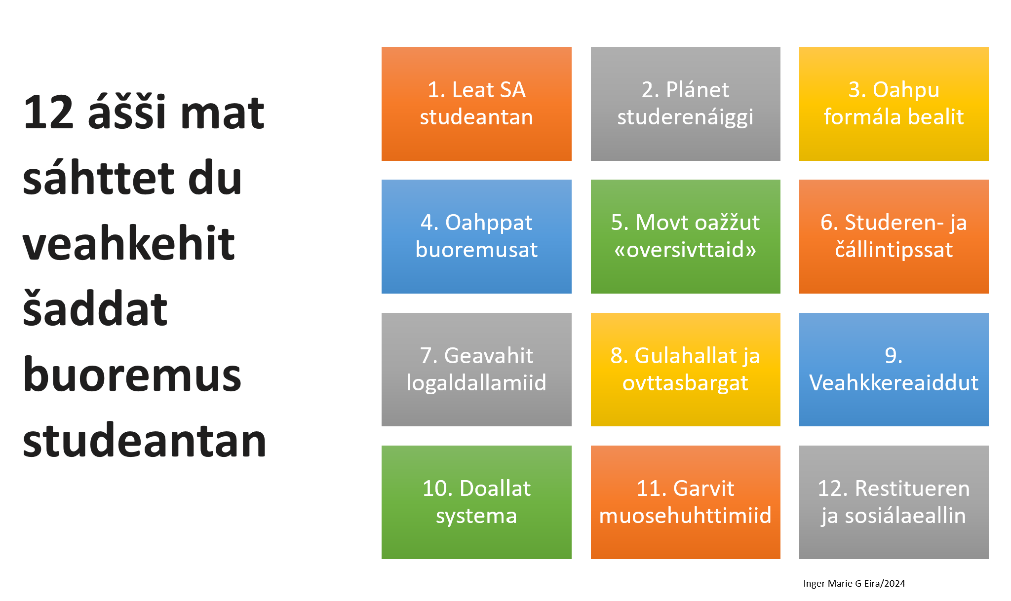 Inger Marie Gaup Eira holder kurs i studieteknikk for studenter. Her presenteres 12 punkter som kan hjelpe med å lykkes som student. I kurset vil du få tips og jobbe praktiskt med å komme i gang med planlegging studietiden.