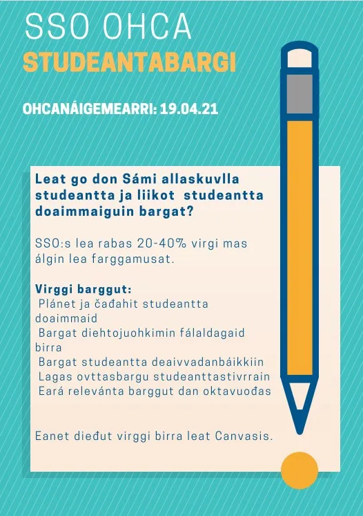 Ohcan, CV ja relevántta dieđut sáddejuvvojit e-postii: sso@ssosamas.no